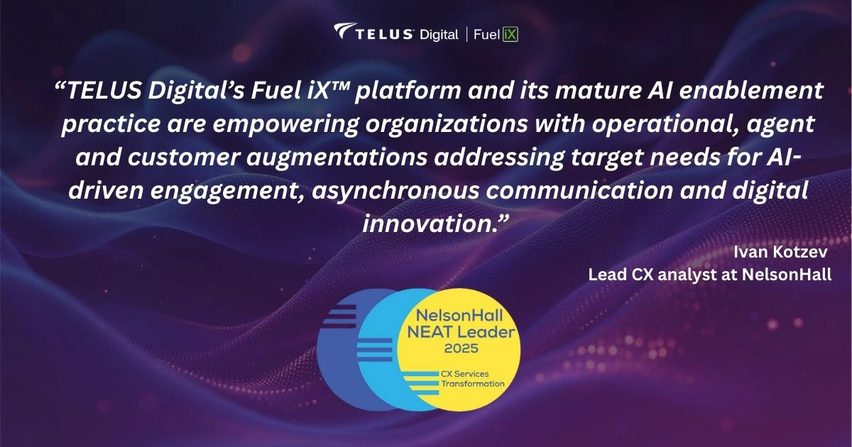 A Leader is NelsonHall’s highest designation and reflects TELUS Digital’s strong ability to help global enterprises transform customer and agent experiences by deploying scalable, production-ready AI.